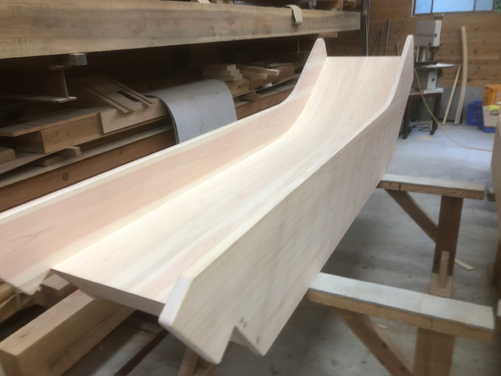 職人が一枚一枚の板を手で削り、自然なカーブを描くように組み上げた一台。