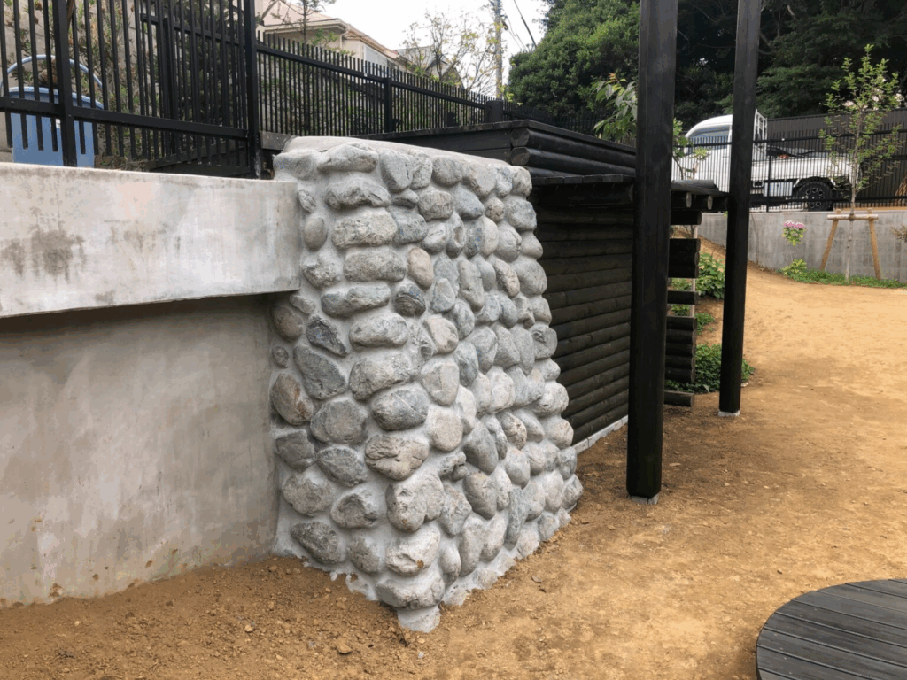 自然石と木材という異なる素材を組み合わせることで、人工的にならない遊具を目指しました。