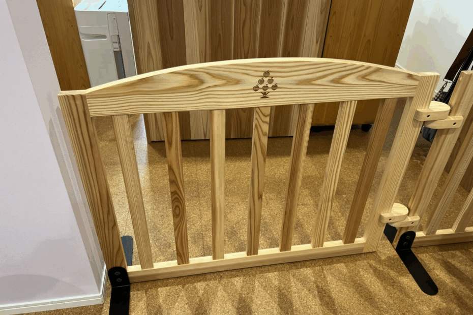 アプリコット倶楽部様の保育園に設置された階段前の木製セーフティゲート。 限られたスペースでも安全性を確保しつつ、園内のインテリアと自然に馴染むようデザインしました。木の質感と温かみを感じられるよう、素材にはコストと耐久性… 製作事例|保育園用木製セーフティゲート、安全とコストを両立した多摩産材の保育設備