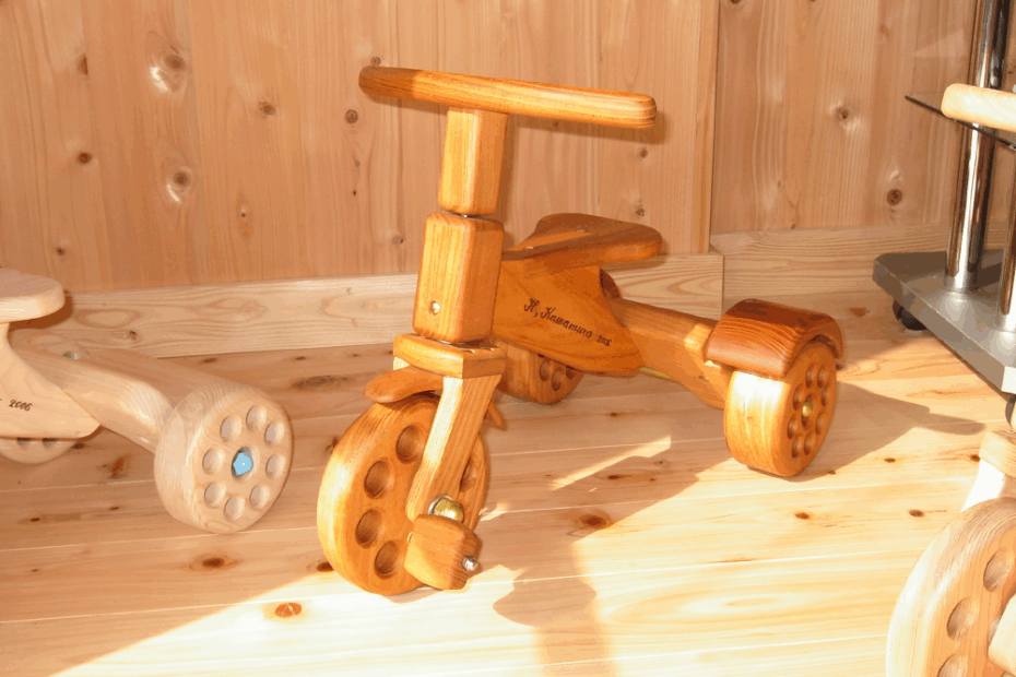 お子さまが最初に出会う、木の乗り物 東京夢工房が手がけた木製三輪車は、多摩産ヒノキとけやき材を組み合わせた、お子さまの「最初の乗り物」として人気の高い作品です。木のやわらかさと強さ、そして香りを活かし、小さな手でも安心し… 製作事例|多摩産材ヒノキとけやきを使った木製三輪車|職人の手仕事でつくる安全な木のおもちゃ